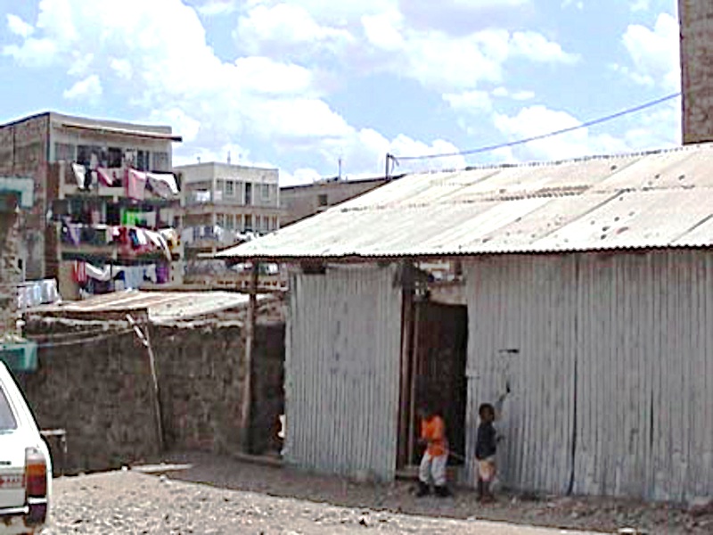 N'ayant ni les moyens ni l'envie de vivre à l'hôtel, c'est donc avec reconnaissance que nous avons été " recueillis " par le Team Leader d'AE au Kenya. Stephen N.Mbogo vit à la périphérie de Nairobi dans un petit quatre pièces au troisième étage d'une maison qui ne sera jamais terminée. L'eau courante n'arrive au troisième que le week-end ! Il faut donc aller chercher plusieurs fois par jour l'indispensable eau froide pour se doucher. Riz, patates douces, bananes plantain et poulet feront désormais partie de notre quotidien pour de nombreuses semaines.